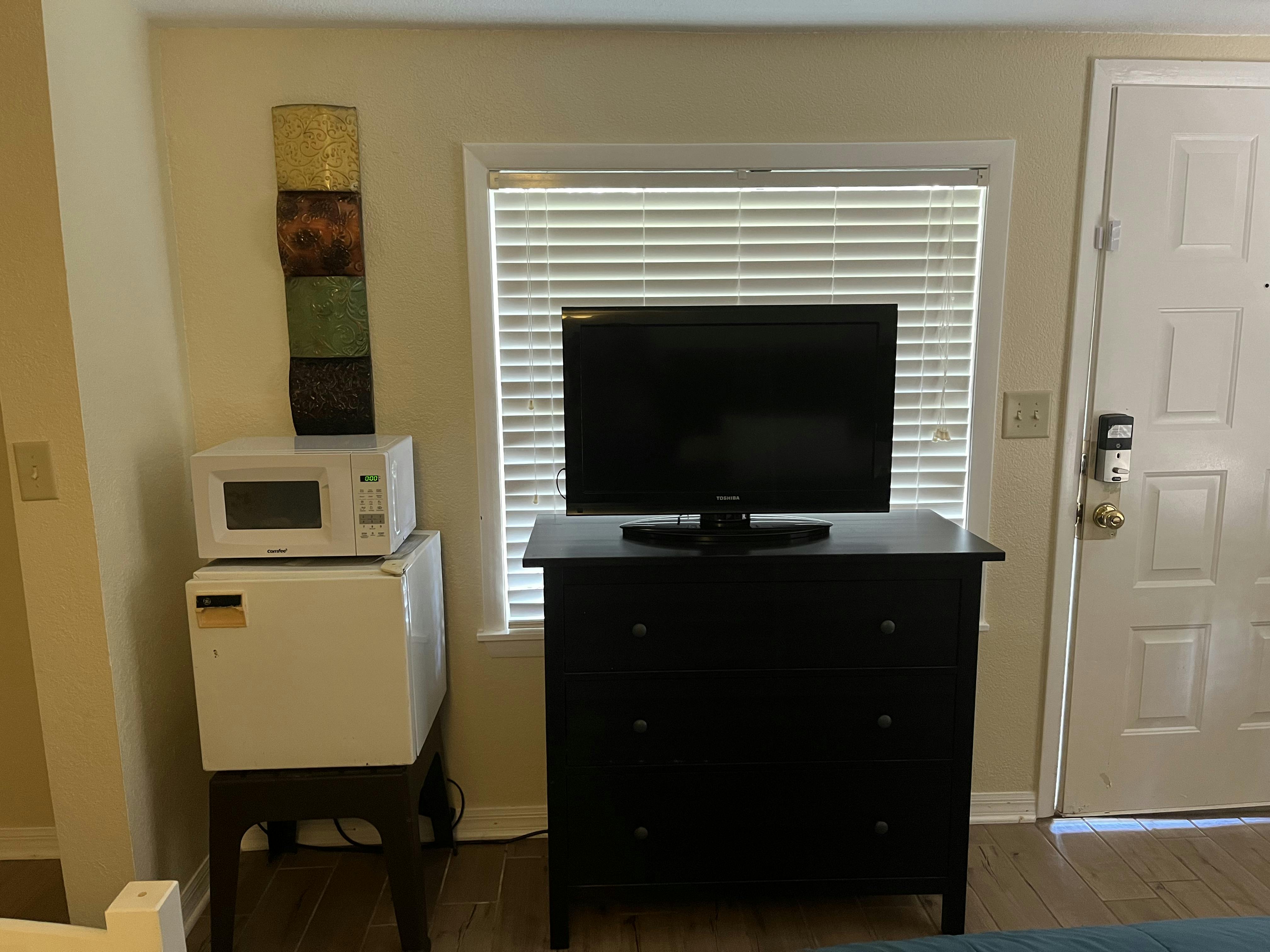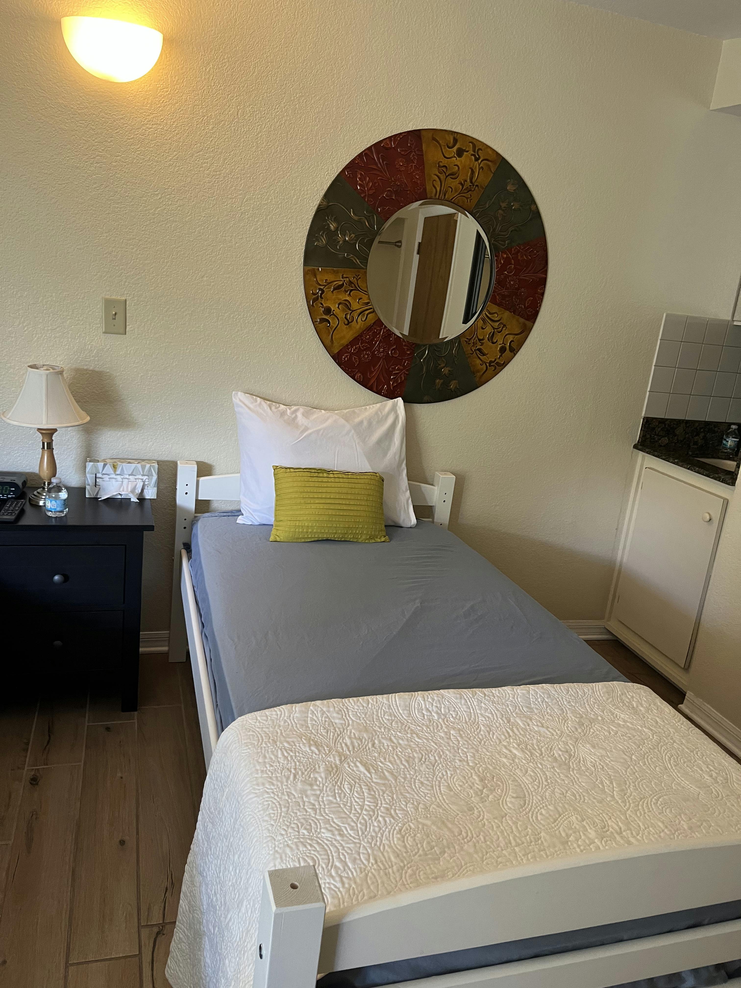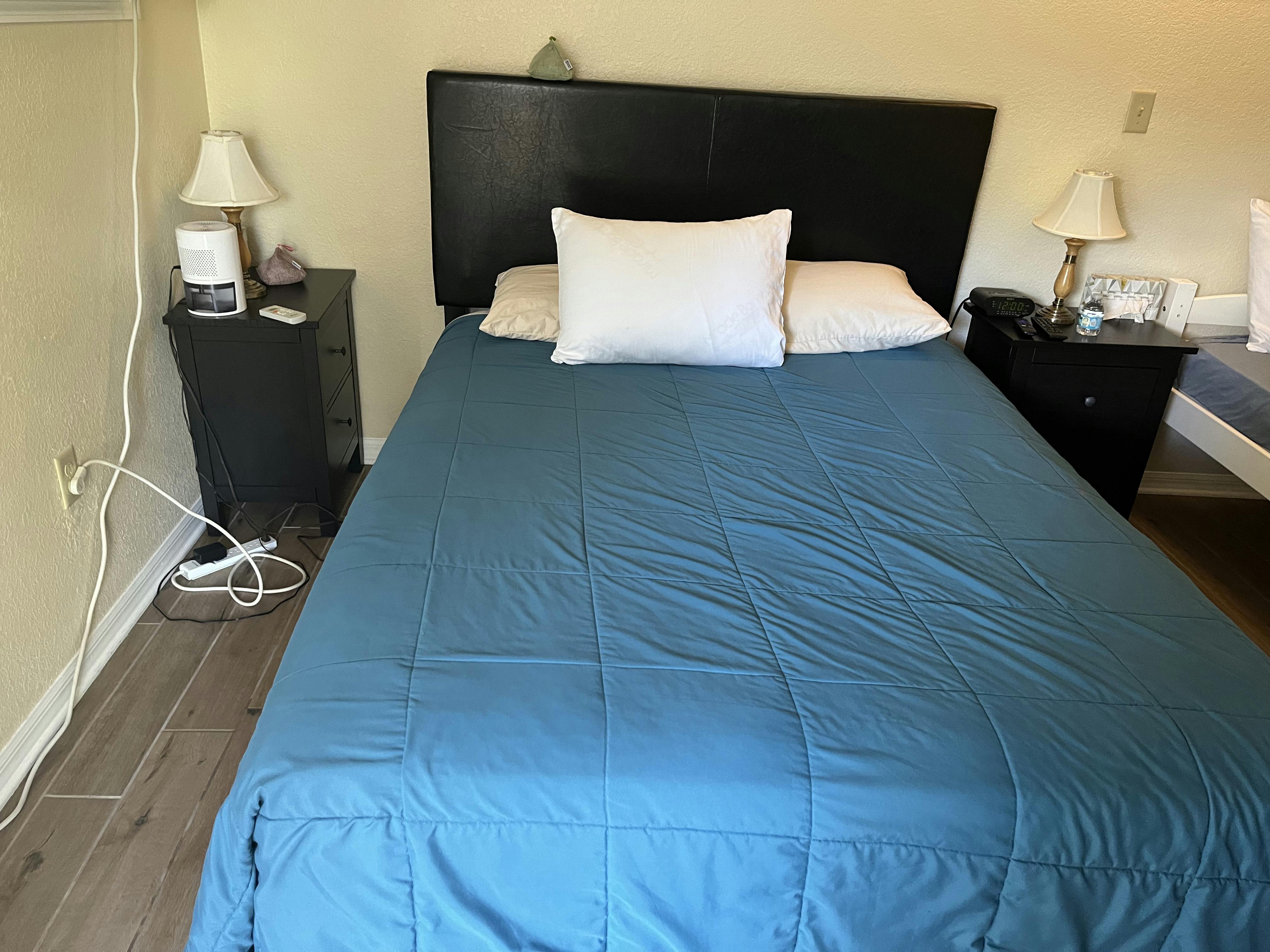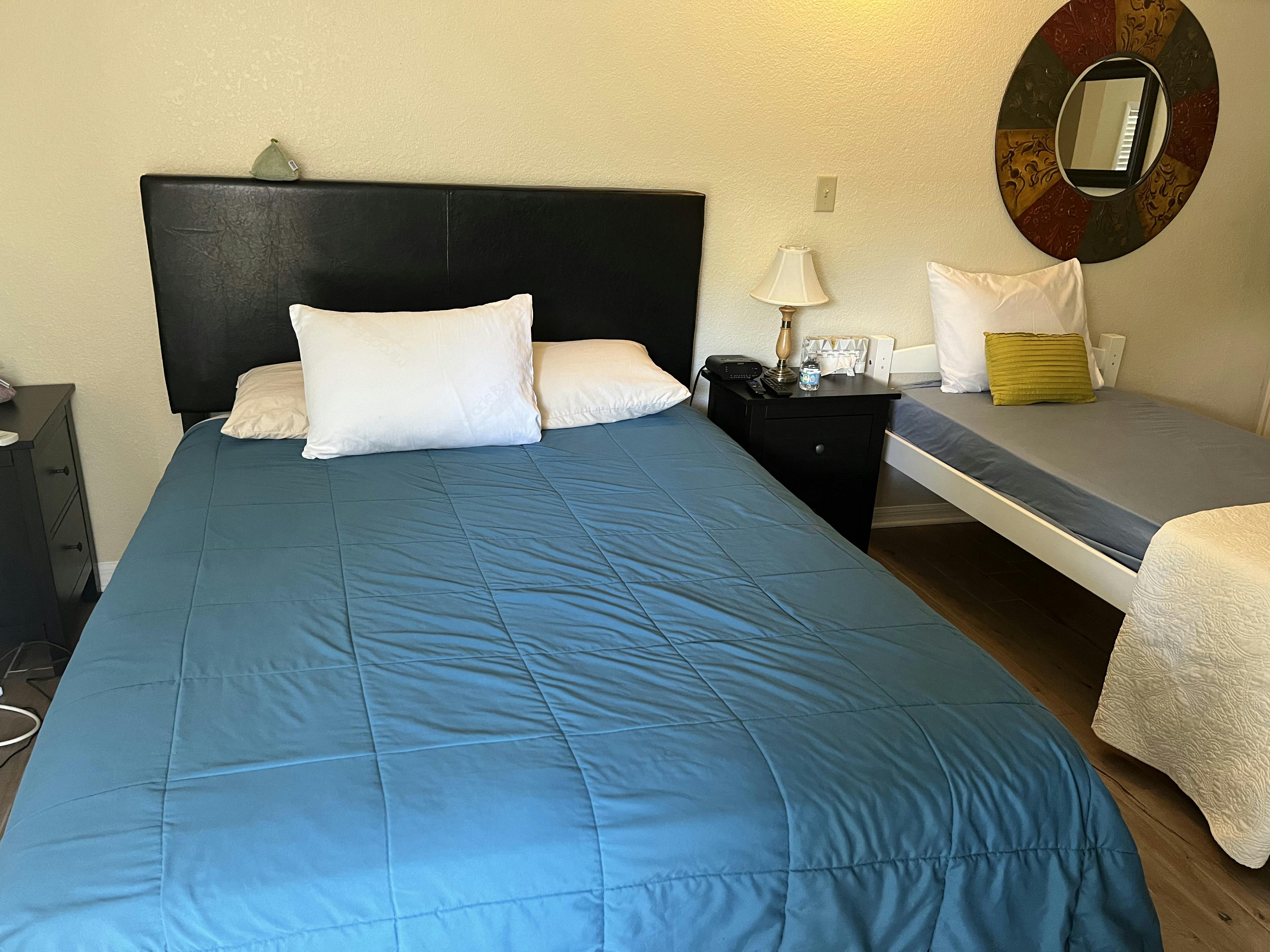 Queen and twin bed with private bathroom and garden view. This room includes: